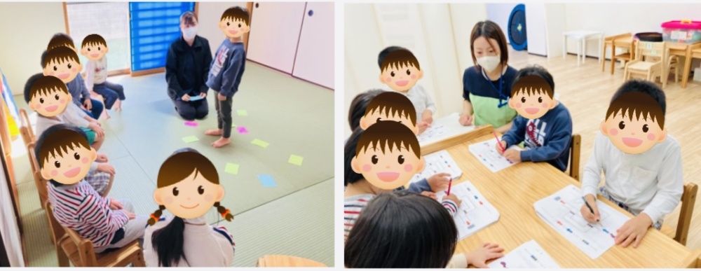 今日は運動・机上共に「比較」にポイントを置き活動に取り組みました!!運動では「男の子」「女の子」に分かれ、机上では「左側の枠」という「左右」など様々な場面・方法で一緒に考えることができました(*^^*)♪