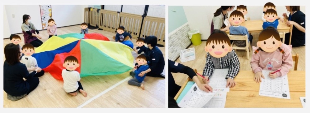 などを目的に取り組みました✨サーキットでは、お友達と協力して跳び箱を運ぶ際に「せーの」と声掛けを行いながら取り組む姿が見られました🍀机上では、お手本と同じ図形を描いたり、1~20や1~30までの数字を順につなぐ練習を行いました✨